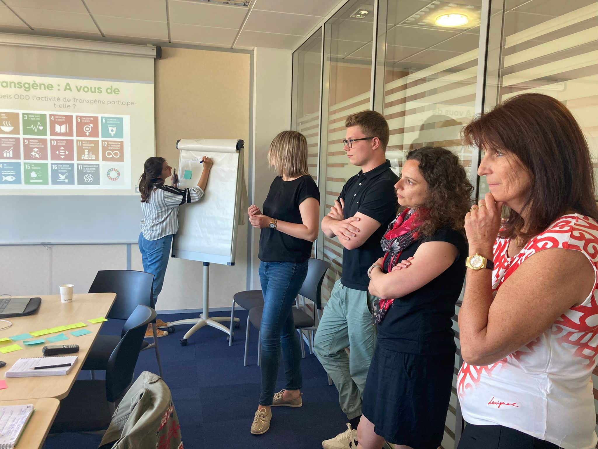 Une équipe d’une douzaine de personnes (formateurs internes et membres du comité RSE) a ainsi été constituée pour être formées à la RSE par Initiatives Durables. L’idée étant que ces personnes forment à leur tour les 160 salariés de Transgene basés à Illkirch.