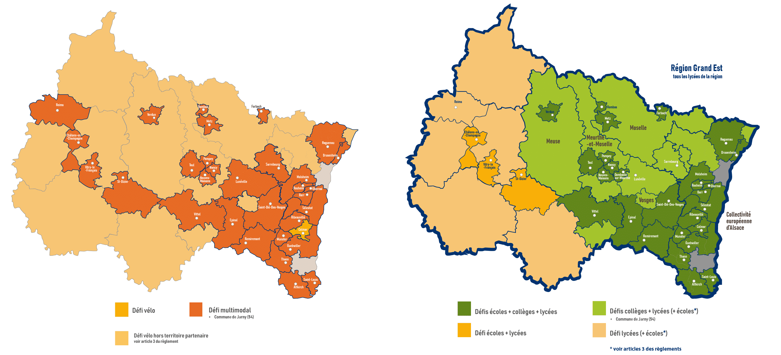 Seules les structures situées dans l’Eurométropole de Strasbourg, et Mulhouse Alsace Agglomération ne peuvent pas participer. Les autres structures hors territoires partenaires peuvent s’inscrire au Défi « Au boulot, j’y vais à vélo ! » mais n’apparaîtront pas dans les classements.