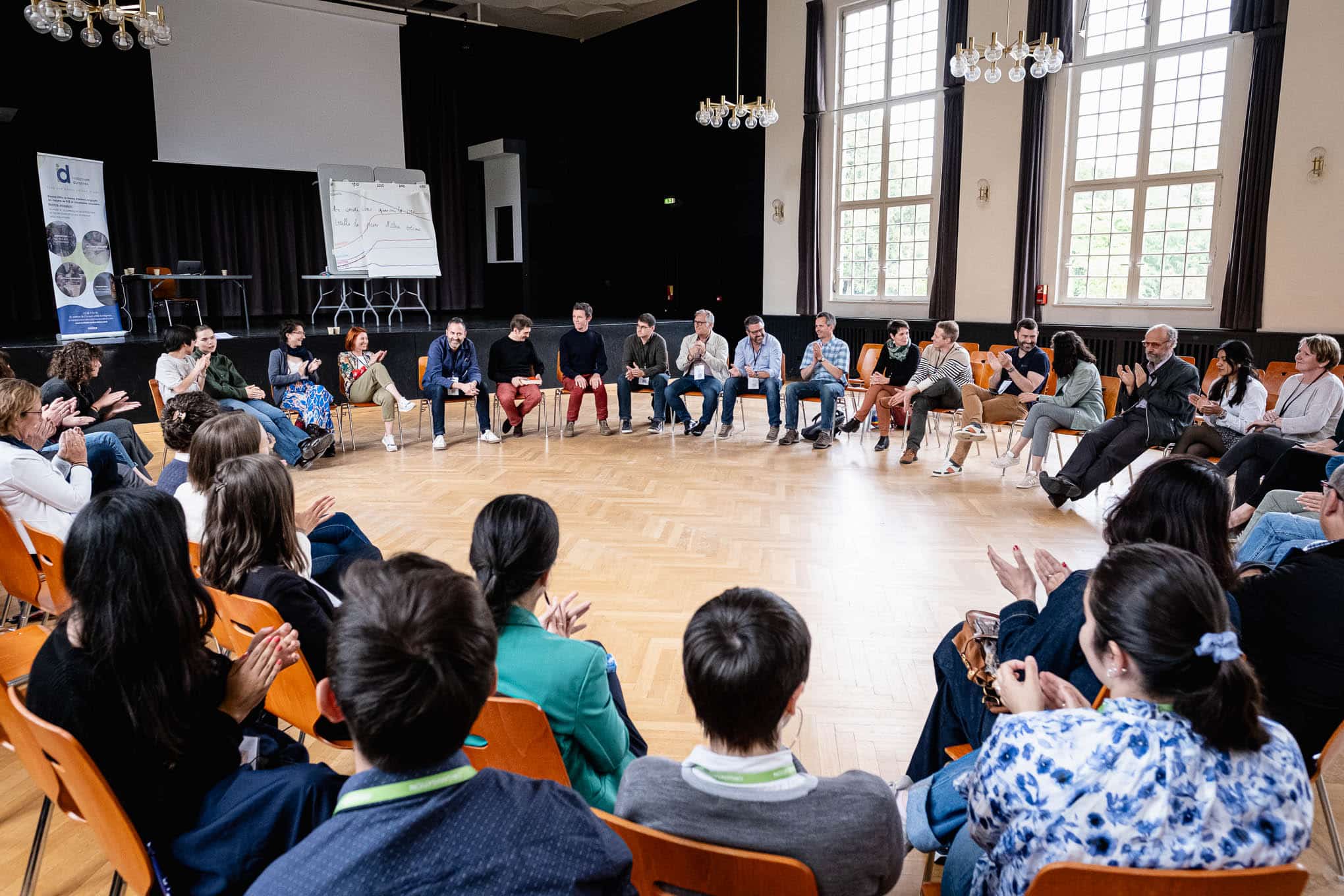 Un des moments forts de notre Assemblée Générale a été sans aucun doute la représentation de la pièce 1972 par la compagnie Facteurs Communs. Une création à la fois touchante et percutante, basée sur le rapport Meadows du Club de Rome, parue en 1972 et intitulé « Les limites de la croissance ». Ce temps fort s’est prolongé par un échange riche entre participant·es, où les émotions et les réflexions se sont mêlées pour nourrir une discussion sur les chemins de la transition.